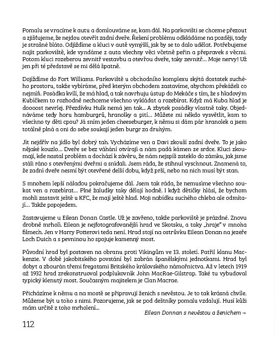 A teď z naší cesty vznikla kniha... Kniha, která není cestopisem, deníkem, ani průvodcem. A zároveň je vším dohromady. Je esencí naší cesty. A to nejdůležitější v ní? Nádherná skotská krajina, místa spojená s Harry Potterem a kouzelná místa, která jsme mohli společně zažít. Místa, kde jsme se mohli společně smát nebo brblat.